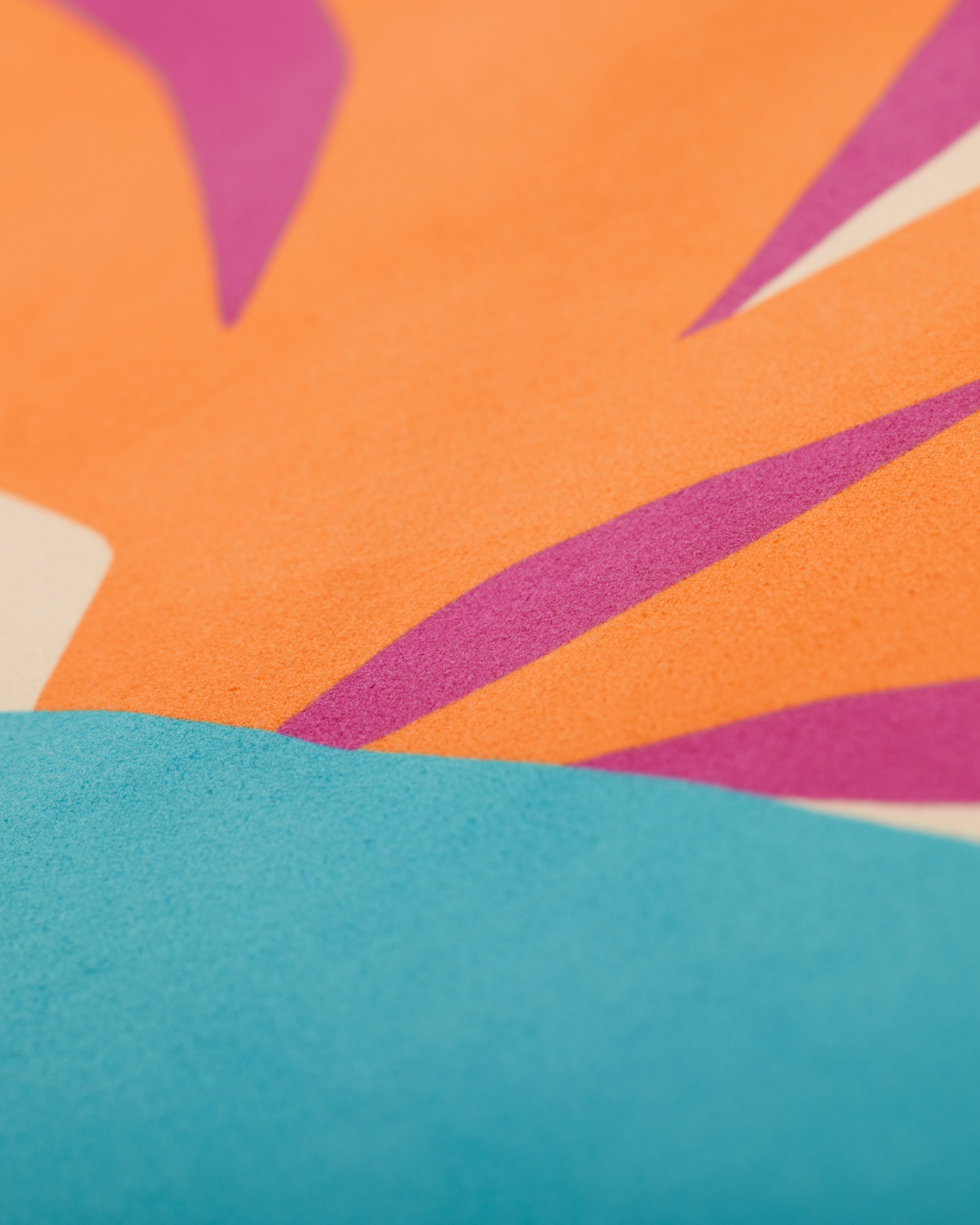 Fabricada con microfibra sostenible, la toalla Paradise es ultraligera, súper absorbente y de secado rápido, ideal para llevar en cualquier aventura. Eleva tu experiencia en la playa con una toalla que combina arte, naturaleza y poder, reflejando la magia de los paisajes volcánicos de las Canarias.